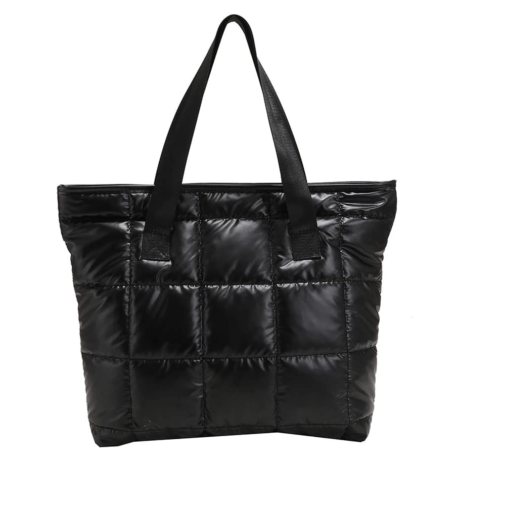 Women Space Padded Nylon Quilted Lattice Top-handle Bag Solid Color Zipper Large Capacity Handbag Luxury Shoulder Bag